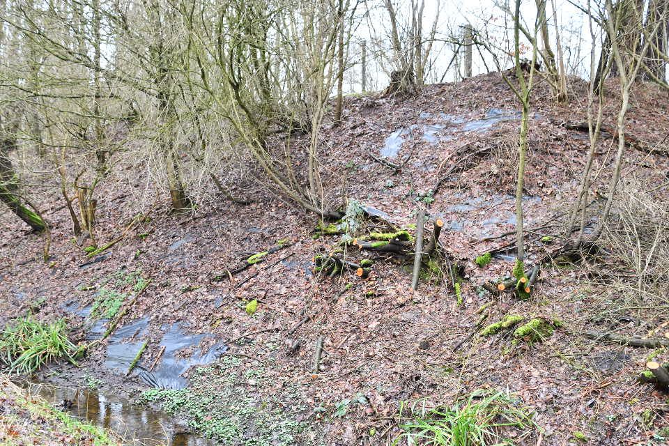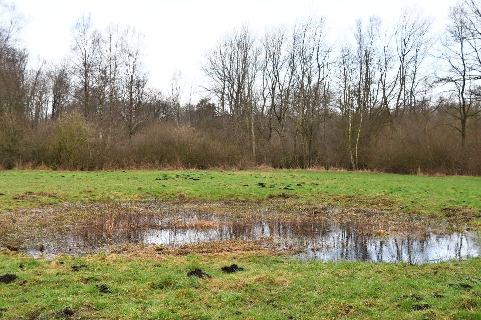 Dieser kleine, flache Tümpel ist eher eine Überflutungsfläche, eignet sich aber ausgezeichnet als Laichgewässer für Amphibien. Foto: Karkossa-Schwarz/Amt Dänischer Wohld